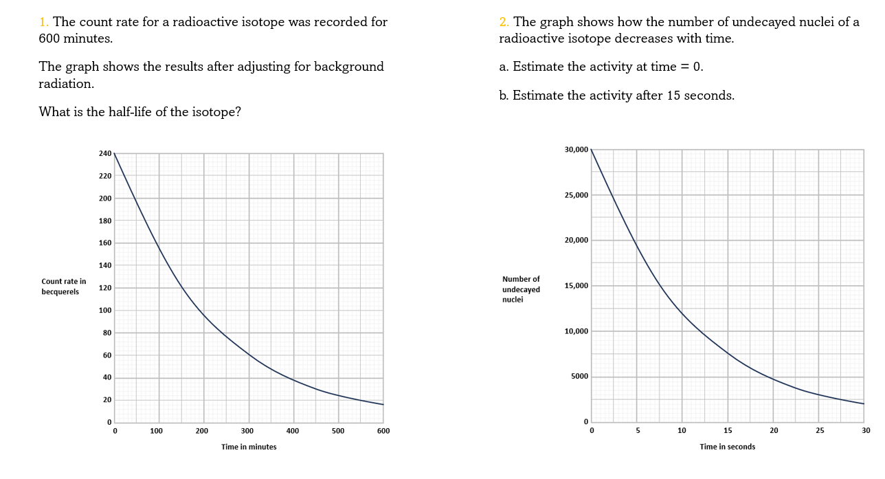 - Read off how long it takes to halve the activity from that point e.g. 70 Bq at 8 hours